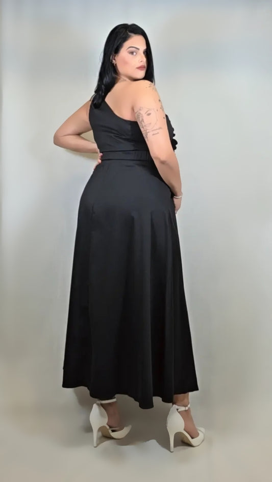 Black One-Shoulder 3d Flower Cocktail Dress