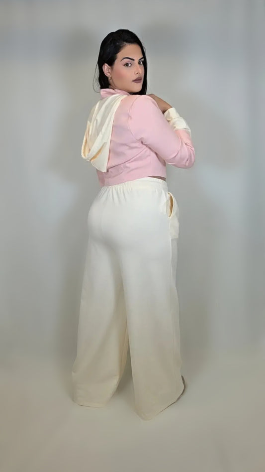 2 Piece Set Dressy Crop Hoodie w/ Wide Leg Pant